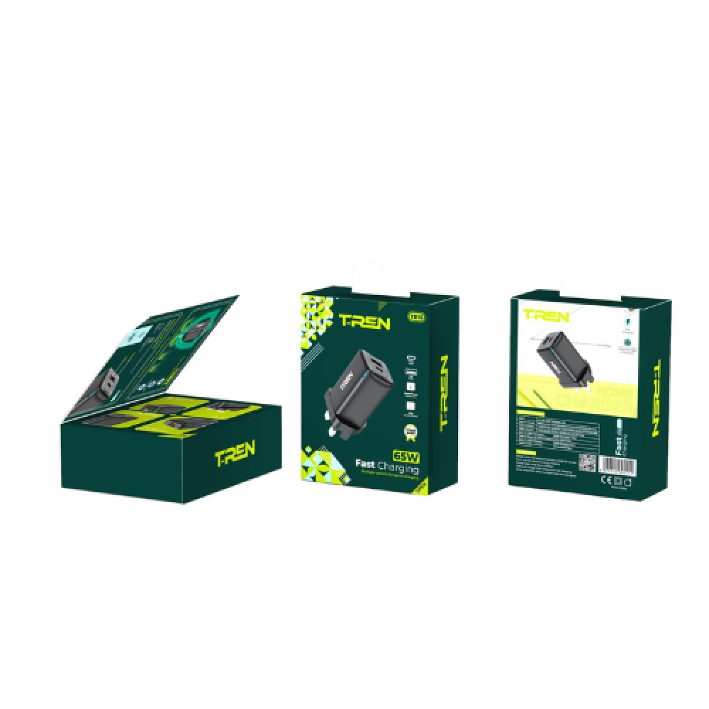 فيش جداري بمنفذ PD ومنفذ USB بقوة 65 واط من T-REN